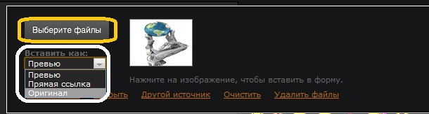 2)Далее вы можете выбрать размер превью (размер картинки отображаемый на форуме). После чего нажать на кнопку "Загрузить"